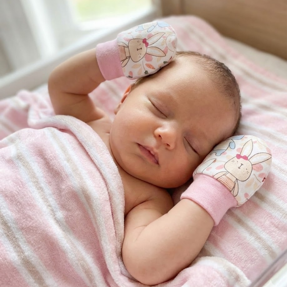 Zero-scratch Protection: Sharp newborn nails grow fast. Our soft fabric creates a safe buffer, preventing scratches on the face, head, and eyes.